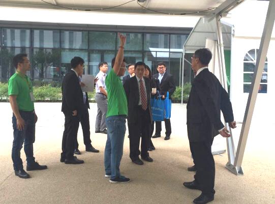 (圖:ECA創(chuàng)始人向新加坡政府官員解釋光伏系統(tǒng))