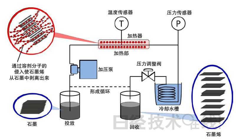 而此次開(kāi)發(fā)的方法利用乙醇等有機(jī)溶劑的超臨界液體來(lái)剝離石墨烯。日本東北大學(xué)教授本間格介紹說(shuō),由于不進(jìn)行氧化處理,因此“幾乎沒(méi)有氧及氫等雜質(zhì)”。而且,此次還開(kāi)發(fā)出了可連續(xù)剝離石墨烯的“流動(dòng)反應(yīng)器”。對(duì)于5g原料,一次剝離處理的時(shí)間僅為1小時(shí)左右。