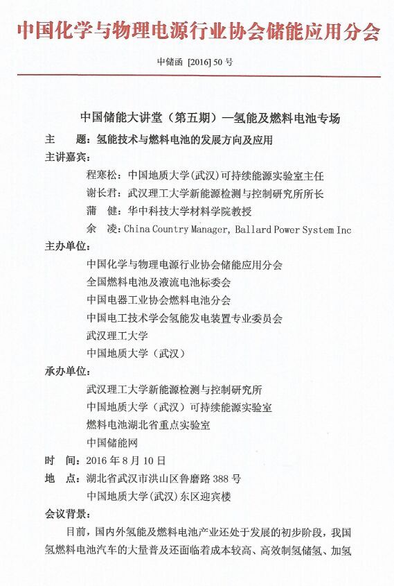 中國儲能大講堂(第五期)—氫能及燃料電池專場