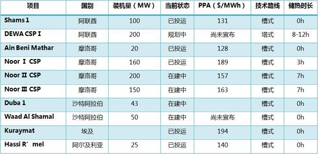 圖:中東及北非(MENA)光熱發(fā)電項目統(tǒng)計
