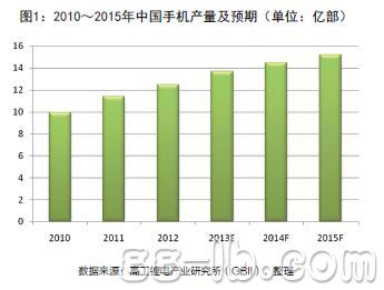 據(jù)高工鋰電產(chǎn)業(yè)研究所(GBII)統(tǒng)計,2012年中國手機產(chǎn)量達到12.5億部。預計到2015年,中國的手機出貨量有望達到15.2億部。(圖1)2006年以來,手機電池基本實現(xiàn)了鋰電池的全覆蓋,按照2012年手機出貨量12.5億部來計算的話,合計產(chǎn)值高達232億元。