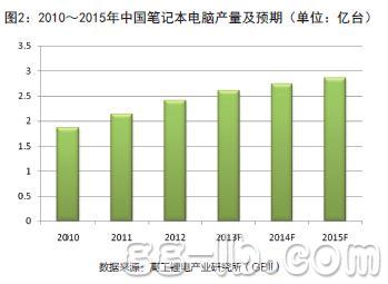 筆記本電腦是目前鋰電池的第二大應用領域。據(jù)高工鋰電產(chǎn)業(yè)研究所(GBII)整理的數(shù)據(jù)顯示,2012年中國筆記本電腦出貨量達到2.4億臺(圖2)。
