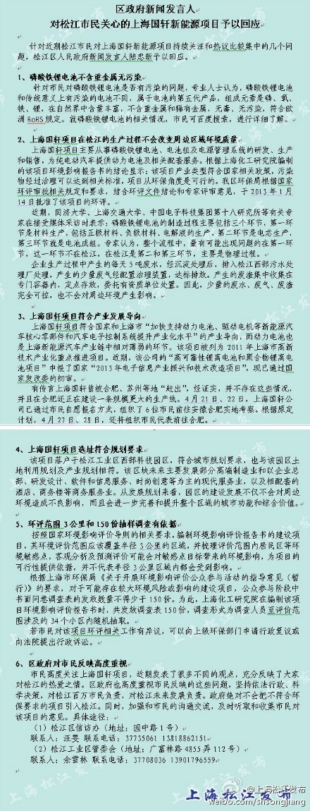 針對網(wǎng)上傳言上海國軒新能源項目曾被合肥、蘇州等地“趕出”,經(jīng)查實,不存在這種情況,目前合肥還正在建設一條規(guī)模更大的生產(chǎn)線。4月21日、22日,上海國軒公司通過市民自愿報名的方式,組織了6位市民前往合肥實地考察。根據(jù)計劃,明天(4月27日)、后天(4月28日)還將組織市民代表前往。