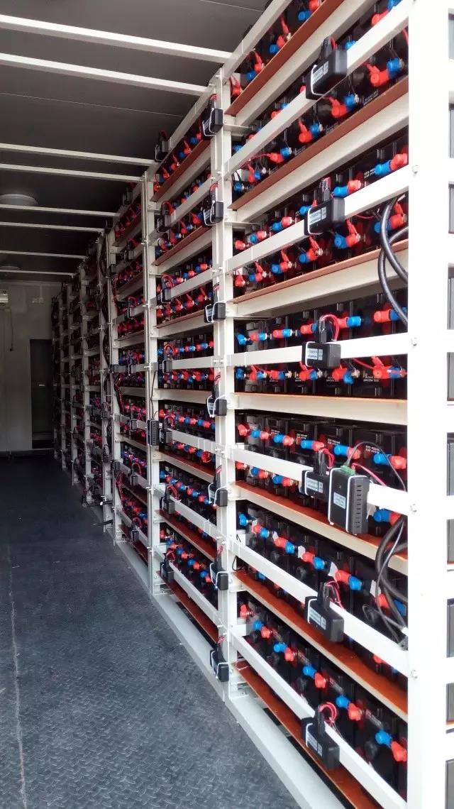 選用標(biāo)準(zhǔn)40GP尺寸集裝箱, (長*寬*高)規(guī)格為12192*2438*2591mm,重量為25t, 防護(hù)等級為IP54。將522節(jié)單體規(guī)格為500Ah 2V的 CL500型鉛炭電池集中安裝在大型集裝箱里,形成模塊化程度高,結(jié)構(gòu)簡單,便于安裝及維護(hù)的儲能電站,同時安裝了液晶觸摸屏,使得監(jiān)測更直觀、操作更便捷。
