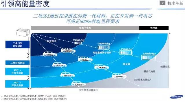 三星SDI株式會(huì)社副社長鄭世雄介紹,三星SDI動(dòng)力電池能量密度目前為250wh/kg,并預(yù)計(jì)在2023年達(dá)到350wh/kg的目標(biāo),屆時(shí),其可以實(shí)現(xiàn)電動(dòng)汽車?yán)m(xù)航里程達(dá)800km。