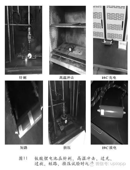 使用安全。鈦酸鋰電池在短路、過(guò)充、過(guò)放、擠壓、針刺、跌落、高溫沖擊、加熱的條件下是非常安全的,圖11是鈦酸鋰電池在針刺、高溫沖擊、過(guò)充、過(guò)放、短路、擠壓試驗(yàn)時(shí)的場(chǎng)景;