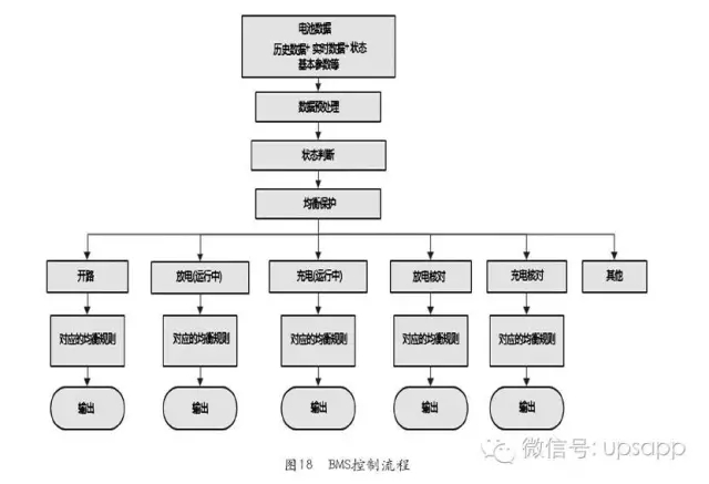電池管理系統(tǒng)(Battery Management System,BMS)由監(jiān)測(cè)、保護(hù)電路、電氣、通訊接口、熱管理和電池組反接保護(hù)裝置等組成,是電池保護(hù)和管理的核心組成部分,不僅要保證電池安全可靠的使用,而且要充分發(fā)揮電池的性能和延長(zhǎng)使用壽命,作為通信用的后備能源,BMS在開關(guān)電源和電池之間起到一個(gè)重要橋梁作用。對(duì)BMS的要求必須符合通信電源供電系統(tǒng)的要求,所以BMS的安全管理模式對(duì)電池的安全性至關(guān)重要。BMS主要包括數(shù)據(jù)采集單元、計(jì)算以及控制單元、均衡單元、控制執(zhí)行單元和通訊單元等。圖13為BMS示意圖。