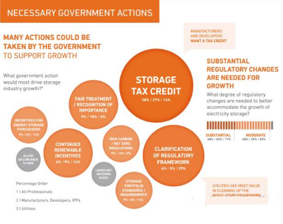 受訪的能源專業(yè)人士呼吁政府給予儲能更多的支持,其中最重要的有2條:1)給予儲能技術(shù)稅收優(yōu)惠,給儲能技術(shù)以補貼的實惠;2)在監(jiān)管體系中明確儲能的地位,給儲能一個名份。