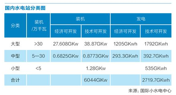電力行業(yè)對(duì)水電規(guī)模以單站裝機(jī)容量大小界定,單站容量大于30萬(wàn)千瓦為大型水電,單站容量5萬(wàn)—30萬(wàn)千瓦為中型水電,單站容量5萬(wàn)千瓦以下的則為小型水電。