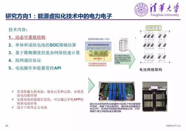 其重要技術(shù)重點(diǎn)包括:動(dòng)態(tài)可重組結(jié)構(gòu)、單體和成組電池的SOC精確估算、基于模糊測度的復(fù)雜網(wǎng)絡(luò)快速計(jì)、實(shí)現(xiàn)電池的組網(wǎng)通信協(xié)議、實(shí)現(xiàn)電池能量的云管控。