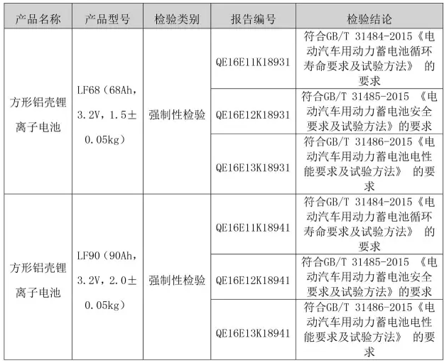 中國儲能網訊:近日,億緯鋰能子公司湖北金泉所開發(fā)出的兩款高能量密度方形磷酸鐵鋰電池LF68-68Ah和LF90-90Ah,順利通過汽車動力蓄電池產品GB/T-2015強檢測試并取得了國家客車質量監(jiān)督檢驗中心出具的《檢驗報告》。