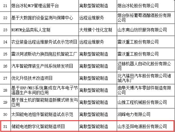 中國(guó)儲(chǔ)能網(wǎng)訊:近日,山東省經(jīng)信委公布了《山東省首批智能制造試點(diǎn)示范項(xiàng)目公示》。據(jù)了解,本次公布的智能制造試點(diǎn)示范項(xiàng)目共計(jì)60項(xiàng),其中涉電力、輸配電、儲(chǔ)能等項(xiàng)目超8項(xiàng),其中山東圣陽(yáng)電源股份有限公司儲(chǔ)能電池?cái)?shù)字化智能制造項(xiàng)目上榜。