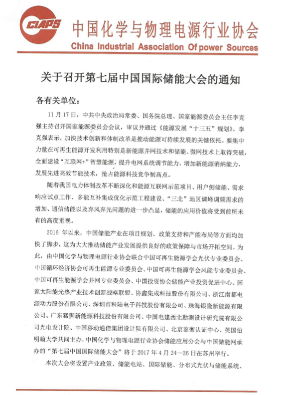 2017第七屆中國(guó)國(guó)際儲(chǔ)能大會(huì)4月24日在蘇州舉行