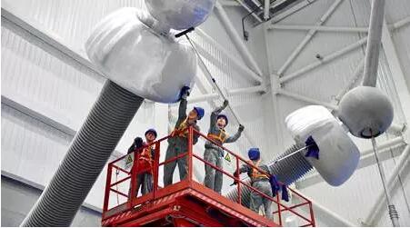 工作人員在銀川東換變電站±660 千伏銀東直流輸電系統(tǒng)進(jìn)行清潔、檢修作業(yè) 王鵬/攝