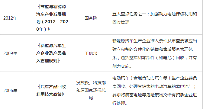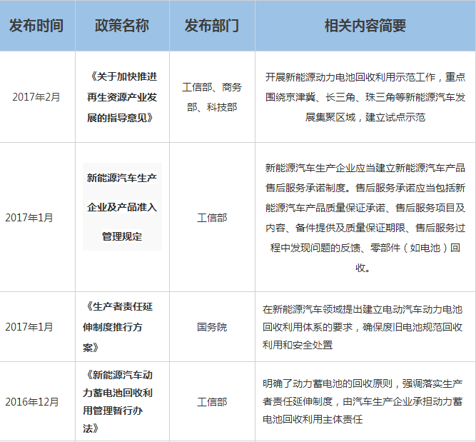 動力電池回收相關(guān)政策如下:
