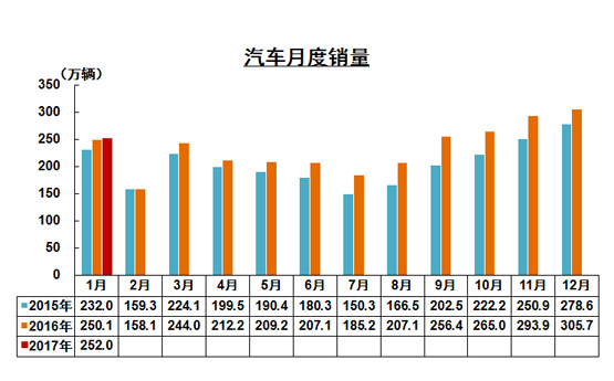 中國儲能網(wǎng)訊:2月13日,中國汽車工業(yè)協(xié)會發(fā)布了2017年1月汽車產(chǎn)銷數(shù)據(jù)。數(shù)據(jù)顯示,1月我國汽車產(chǎn)銷分別為236.9萬輛和251.95萬輛,同比分別下降3.86%和同比微增0.23%。