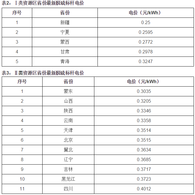 本文按照對光伏標桿電價三類資源區(qū)的劃分,根據(jù)2015年12月30日國家發(fā)改委頒布的各省份最新的脫硫標桿電價進行了統(tǒng)計,供查詢使用。
