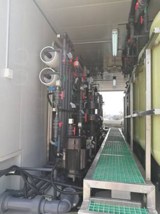 2016年11月20日,成套設(shè)備在豐海公司調(diào)試基地完成試運行,起運發(fā)往海南,12月8日運抵趙述島。12月20日,豐海公司技術(shù)團隊陸續(xù)上島,開始安裝調(diào)試。12月31日,設(shè)備成功出水,電導(dǎo)率4.38,水質(zhì)優(yōu)良,可供島上居民日常使用。三級反滲透產(chǎn)水灌裝成桶裝成品水,進行儲存和銷售。