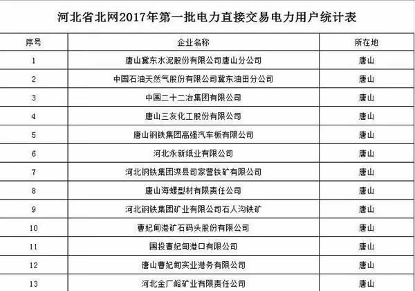 按照國(guó)家有關(guān)電力市場(chǎng)交易的規(guī)定,現(xiàn)將河北省北網(wǎng)2017年符合參加電力直接交易準(zhǔn)入資格的電力用戶和發(fā)電企業(yè)名單(第一批)予以公示(見(jiàn)附表),接受社會(huì)各界監(jiān)督,如有異議,可通過(guò)來(lái)訪、來(lái)函、來(lái)電等形式實(shí)名向我委反映情況和意見(jiàn)。