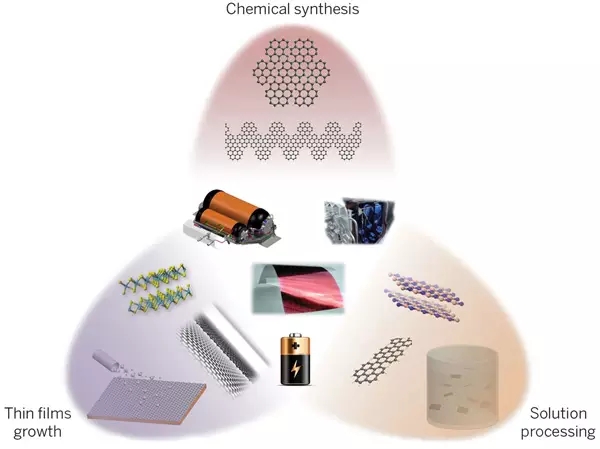 在光伏器件、燃料電池、電池、 超級電容器等中石墨烯的集成,為不斷增加的全球能源驅動的需求設備提供了機遇和應對挑戰(zhàn)。石墨烯天然的二維特性具有超高的比表面積,可達2200m2/g,同時也兼顧有高導電性和柔性,使石墨烯成為電荷儲存、離子儲存和氫氣儲存的有效材料。其他二維晶體,比如過渡金屬硫族化合物(TMDs)和過渡金屬氧化物,也成為能源應用很有前景的選擇。使用二維晶體這樣的優(yōu)勢,采用旋凃過程或者疊層組裝方法,有可能根據(jù)“需求”創(chuàng)造和設計出分層人工結構。