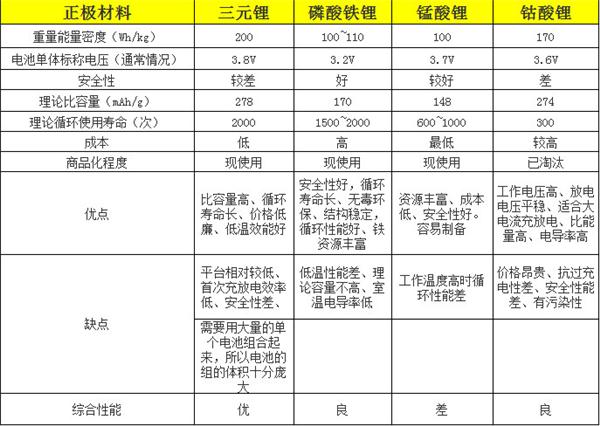 據(jù)統(tǒng)計(jì),在今年已公布的兩批名單中,純電動(dòng)物流車主要采用的是三元鋰電池,其次是磷酸鐵鋰電池和錳酸鋰電池。分析其中的原因,可能與各類動(dòng)力電池的優(yōu)缺點(diǎn)有一定關(guān)系。