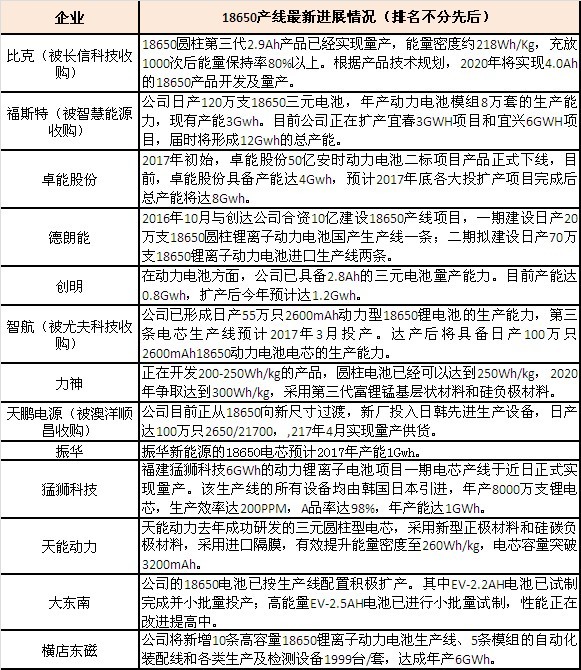 當(dāng)前以18650技術(shù)為主的企業(yè)紛紛傳來擴(kuò)產(chǎn)消息,大部分產(chǎn)能擴(kuò)張都將在今年底或明年初完成,屆時(shí),一輪大范圍的18650動(dòng)力電池產(chǎn)能將會(huì)集中釋放。
