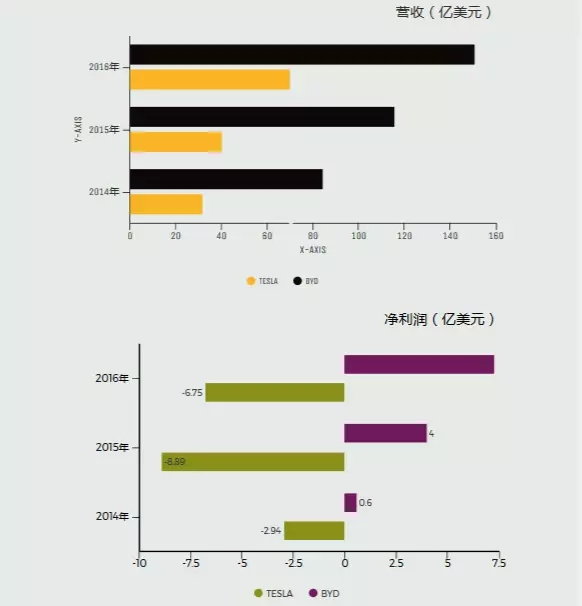 賺錢能力上,特斯拉營(yíng)收、凈利潤(rùn)、汽車銷量全方位落后,比亞迪雖然品牌很不高大上,但進(jìn)入新能源汽車領(lǐng)域早,而且根據(jù)中國(guó)市場(chǎng)、中國(guó)國(guó)情推出多款價(jià)格低廉的車型,插電混動(dòng)、純電動(dòng),乘用車、客車,都有涉及,產(chǎn)品線豐富,趕上了2014年以來(lái)中國(guó)新能源汽車市場(chǎng)的春天,所以營(yíng)收、凈利潤(rùn)、銷量等增速更快。