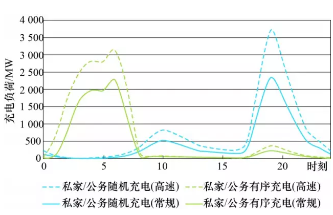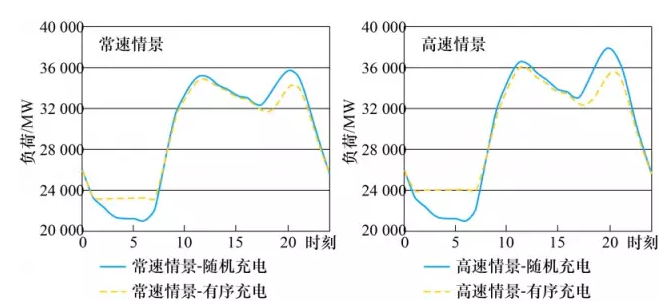 表1對比了隨機充電與有序充電下電動汽車充電負荷的差異。