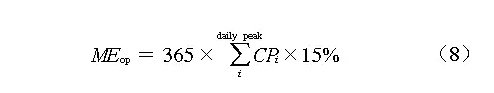 現(xiàn)行上海市居民用戶分時電價如表2所示,第二檔低電壓用戶高峰時段(6:00–22:00)電價為0.677元/kWh,低谷時段(22:00–次日6:00)電價為0.337元/kWh,峰谷電價比近似2︰1,與SDG&E電動汽車充電分時電價比例相似。根據(jù)EVProject對充電價格彈性的分析,當(dāng)峰谷電價之比較低時,電動汽車用戶參與需求響應(yīng)的價格彈性相對較高,而隨著峰谷電價之比不斷拉大,價格彈性逐漸降低,并在參與度達到90%后趨近于零。本研究假設(shè)到2030年上海市將基本建成支持有序充電的軟硬件環(huán)境,則當(dāng)峰谷電價之比較低(2︰1)時,電動汽車需求響應(yīng)參與率略高于目前圣地亞哥電動汽車用戶水平達到75%,即約75%電動私家車及電動公務(wù)車用戶將響應(yīng)上述分時電價將充電負荷轉(zhuǎn)移至低谷時段;而當(dāng)分時電價比進一步拉大至6︰1后,參與需求響應(yīng)的用戶比例提升至90%,與目前圣地亞哥電動汽車參與率上限相同。峰谷差變化及年度移峰電量可由下式得到: