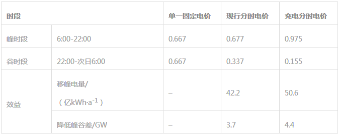 可見,當(dāng)采用2︰1分時電價后,大多數(shù)電動汽車將參與有序充電,系統(tǒng)峰谷差也從單一固定電價下的16.9GW下降至13.2GW,年度移峰電量達到42.2億kWh,平均每輛電動汽車的有效調(diào)節(jié)功率為1.8kW,有效調(diào)節(jié)電量為2050kWh(移峰電量);而當(dāng)分時電價比拉大到1︰6之后,系統(tǒng)峰谷差進一步降低0.7GW,年度移峰電量達到50.6億kWh,平均每輛電動汽車的有效調(diào)節(jié)功率2.1kW,有效調(diào)節(jié)電量為2460kWh。電動汽車有序充電首先降低了電動汽車用戶的充電成本。在單一固定電價情況下,平均每輛電動汽車每天充電電量為8.33kWh,年度充電成本為2028元/kWh。在2︰1分時電價情況下,充電量需求不變,年度充電成本下降65%至709元/kWh;在6︰1分時電價情況下,充電量需求僅為原始成本的19%,即392元/kWh。