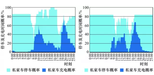 圖5 上海市電動私家車、公務(wù)車停車及充電時間概率