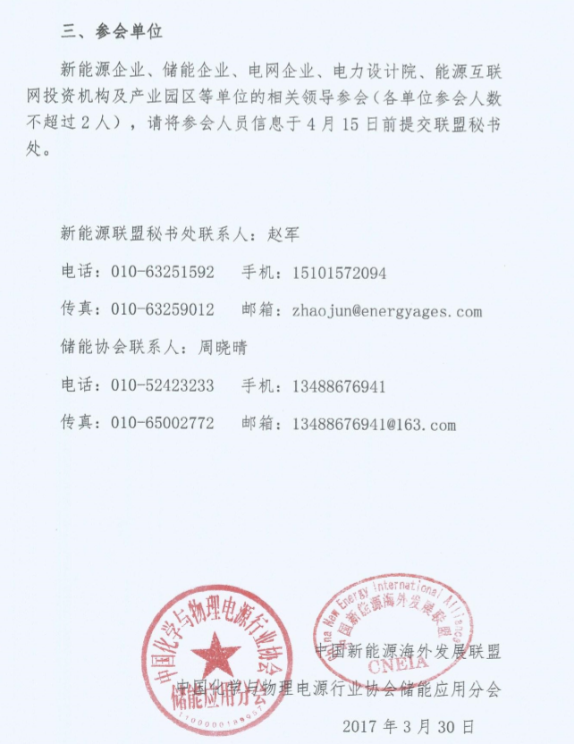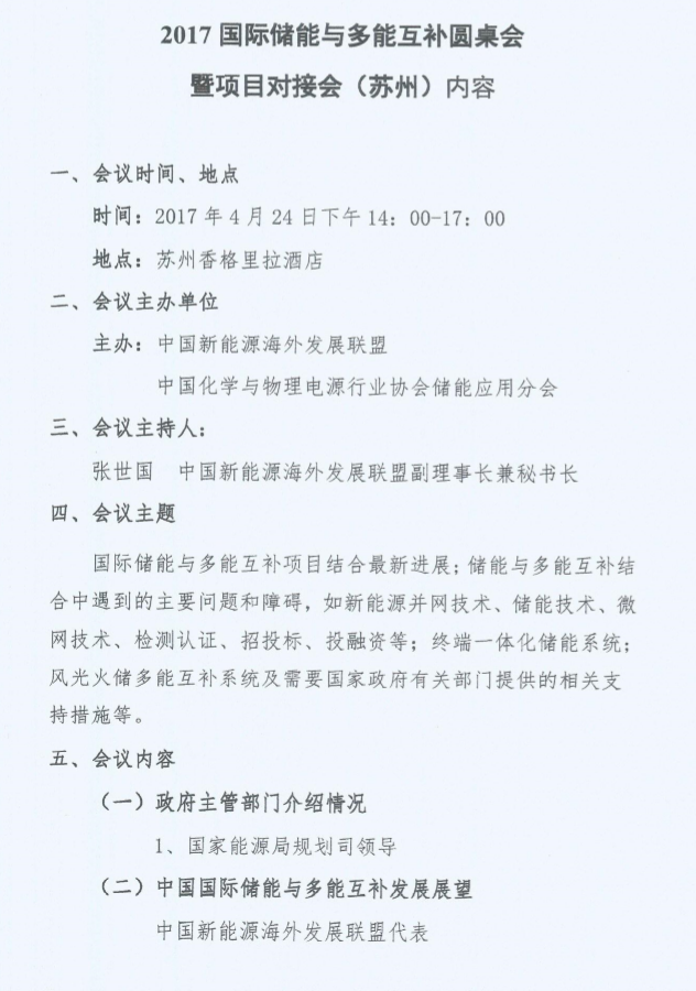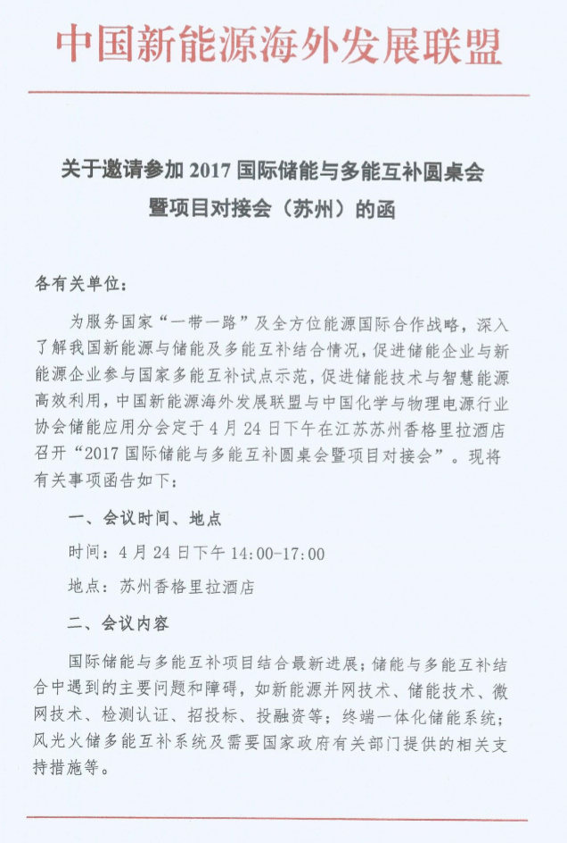 關(guān)于邀請參加2017國際儲能與多能互補圓桌會
