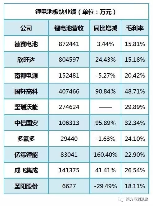 綜合來看,2016年鋰電池上市企業(yè)在營業(yè)收入和凈利潤上普遍實現(xiàn)了兩位數(shù)的增長。