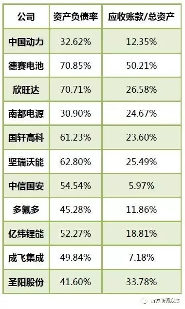 資金風險方面,從資產(chǎn)負債率看,目前11家上市公司資金情況總體良好,但德賽電池和欣旺達負債率偏高,超過了70%。另有企業(yè)在年報中提及應收賬款回收風險,11家公司應收賬款占總資產(chǎn)的比例平均值超過20%,德賽電池這一數(shù)值超過50%。