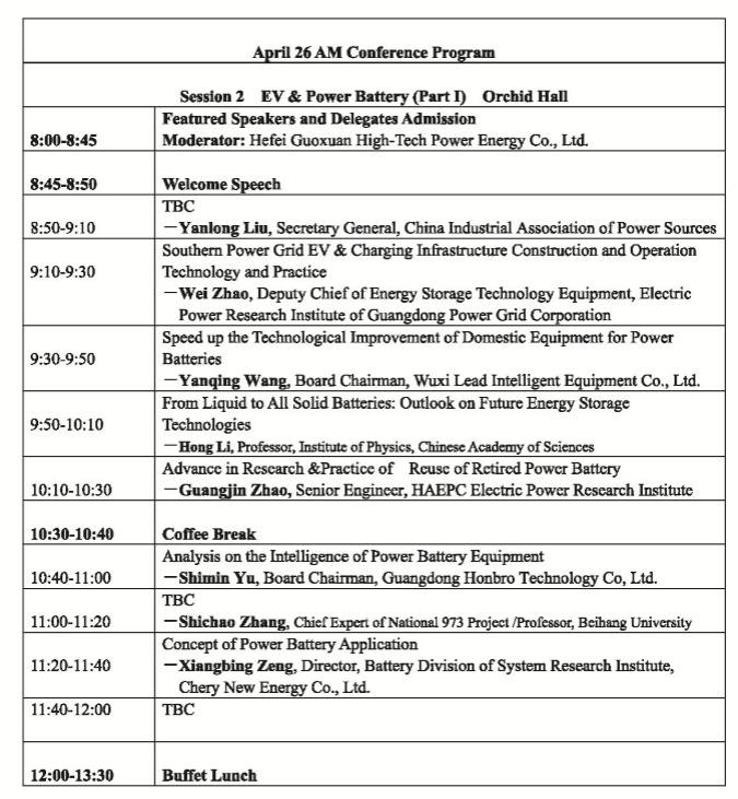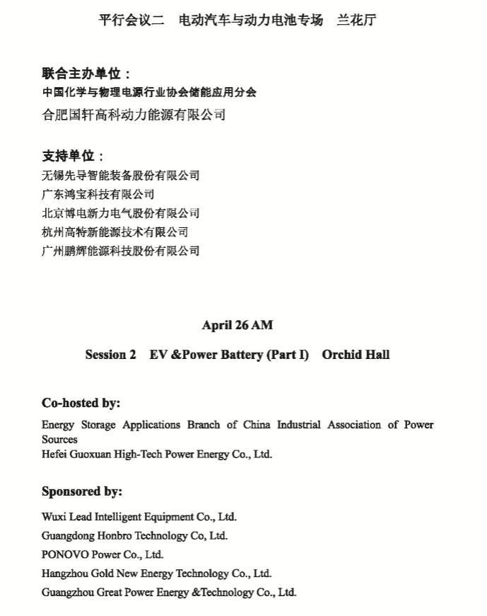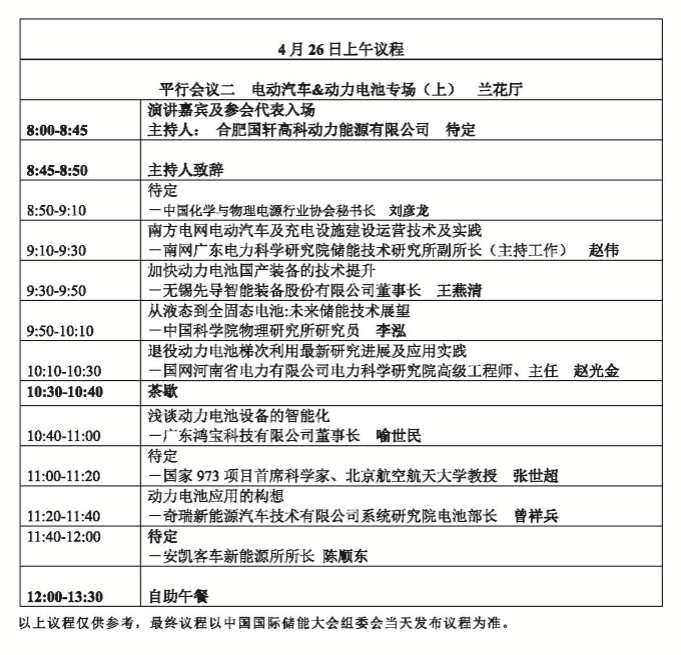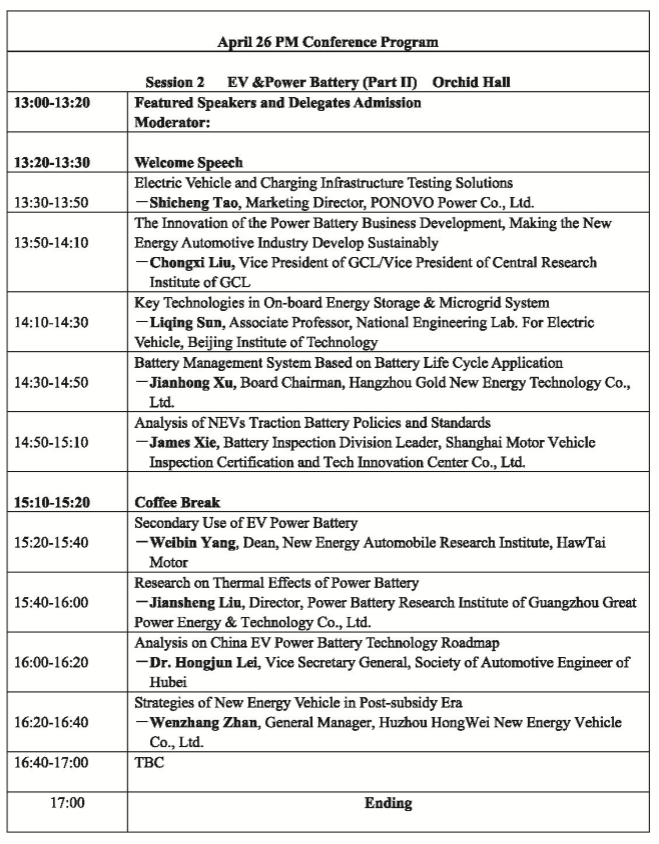 以下為電動汽車暨動力電池專場具體議程安排。