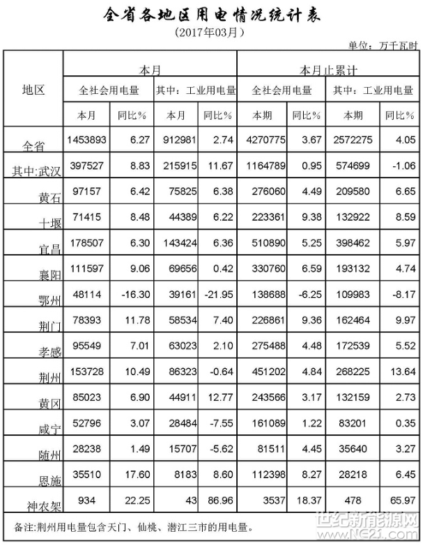 (五)全省各地區(qū)全社會用電普遍增長,荊州地區(qū)工業(yè)用電增速超兩位數(shù)。一季度全省14個用電統(tǒng)計地區(qū)中,13個地區(qū)全社會用電不同程度增長,僅鄂州1地下降。“一主兩副”城市武漢、宜昌、襄陽全社會用電量合計占全省總量的46.98%,3市全社會用電同步增長對全省用電的增長起到穩(wěn)定的基石作用。從工業(yè)用電情況看,12個地區(qū)增長,其中荊州地區(qū)(含仙桃、天門、潛江3市)一季度工業(yè)用電增幅13.64%,工業(yè)企業(yè)開工及生產(chǎn)形勢較好。鄂州市因部分鋼鐵企業(yè)停產(chǎn)升級改造,一季度工業(yè)用電下降8.17%,導(dǎo)致該市全社會用電出現(xiàn)下降。