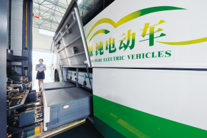 江西共青城的電動公交正??吭谲囌靖鼡Q電池