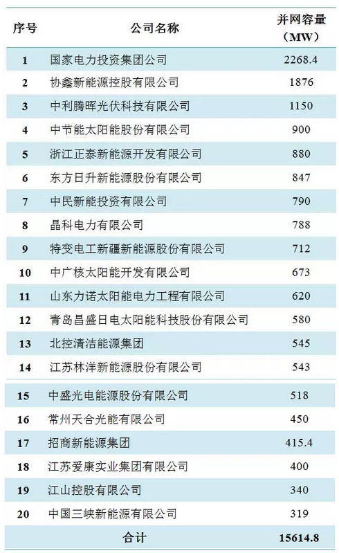 表2:2017年中國光伏投資企業(yè)20強(qiáng)
