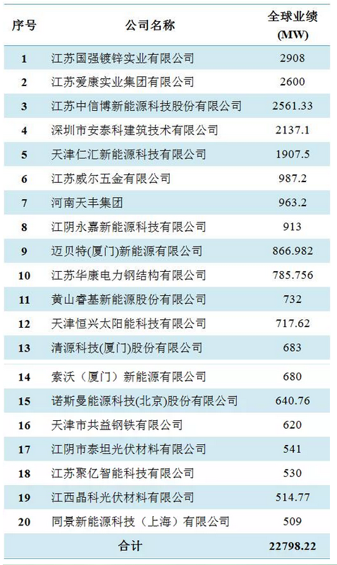 表6:2017年中國光伏支架企業(yè)20強(qiáng)
