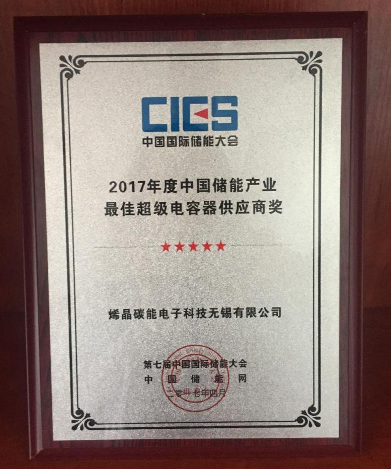 烯晶碳能斬獲2017年度中國儲(chǔ)能產(chǎn)業(yè)最佳超級(jí)電容器供應(yīng)商獎(jiǎng)