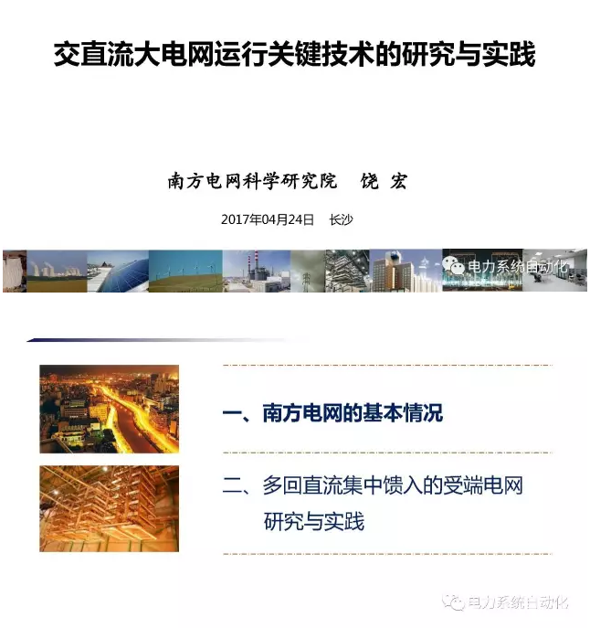 中國(guó)儲(chǔ)能網(wǎng)訊:“2017年中國(guó)工程院學(xué)部學(xué)術(shù)活動(dòng)——能量“綠色變換”技術(shù)與裝備及其產(chǎn)業(yè)化發(fā)展的瓶頸問(wèn)題與對(duì)策研討會(huì)”4月24日在長(zhǎng)沙舉行,南方電網(wǎng)科學(xué)研究院有限責(zé)任公司饒宏董事長(zhǎng)在會(huì)上作了題為《交直流大電網(wǎng)運(yùn)行關(guān)鍵技術(shù)的研究與實(shí)踐》的主題報(bào)告,小編征得饒宏董事長(zhǎng)同意,在此分享報(bào)告PPT,歡迎品讀。