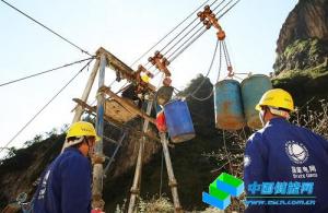 錦蘇特高壓工程在無(wú)人區(qū)施工過(guò)程中,工作人員通過(guò)索道運(yùn)送生產(chǎn)物資。