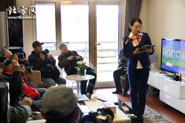 跟隨講解員的介紹,網(wǎng)友們看到一個新奇的家居世界。窗簾可以自動開合;所有家電都可以通過一鍵式完成操作;即使家中沒有人,也可以通過手機操作系統(tǒng)完成對家電的遠程控制……展現(xiàn)在網(wǎng)友們面前的是一幅未來智能化生活的場景。