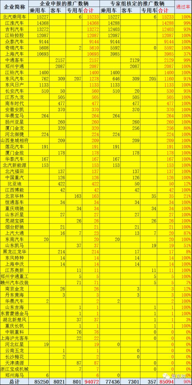 從推廣地區(qū)的省份來看,安徽申報20374輛最多(江淮和奇瑞兩大新能源汽車企業(yè)在此),北京15233輛,江西13600輛,上海10752輛,浙江17957輛。推廣大戶陜西和廣東省等幾個省目前沒有申報,應該還是在走地方政府審核流程。比亞迪的新能源在陜西和廣東等多地有生產(chǎn),暫且多放到陜西。