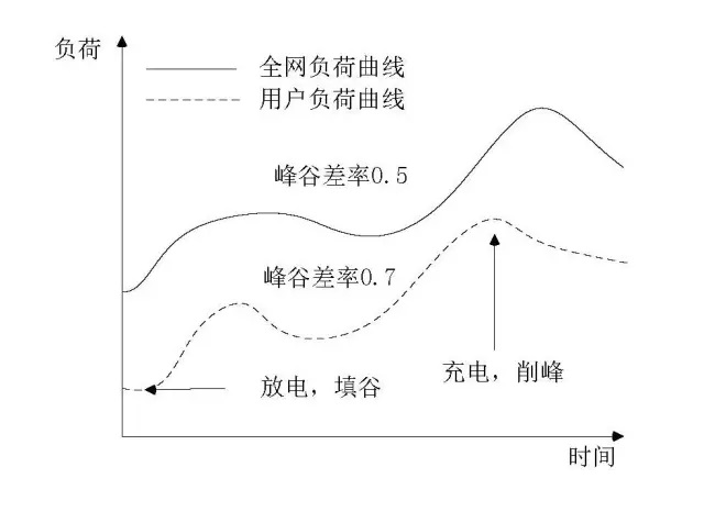 《基本規(guī)則》中的輔助服務條款中提出了調(diào)峰貢獻度的概念,“電力用戶峰谷差率小于全網(wǎng)峰谷差率時調(diào)峰貢獻度為正,電力用戶峰谷差率大于全網(wǎng)峰谷差率時調(diào)峰貢獻度為負。與貢獻度為正的電力用戶簽訂直接交易合同的電廠,免除相應直接交易電量調(diào)峰補償費用的分攤?!庇脩粼谶M行輔助服務補償費用結(jié)算時,可通過儲能及靈活性資源對自身的負荷進行調(diào)節(jié)(如圖2所示),進而改善自身的調(diào)峰貢獻度。