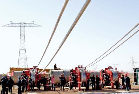 新疆首條特高壓輸電線開架