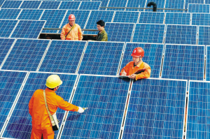 4月23日,安徽省寧國市港口工業(yè)園區(qū)光伏發(fā)電站,寧國供電公司員工在對太陽能電池陣列進行最后的調試檢查。劉國珍 攝