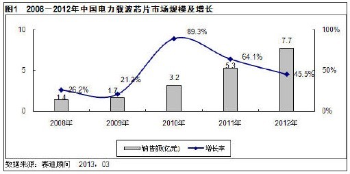 作為全球主要的電能表制造國之一,近幾年中國的電表出貨量穩(wěn)步增長。2012年中國電表總產(chǎn)量達(dá)1.1億臺(tái),其中智能電表占據(jù)過半份額。國家電網(wǎng)加快了智能電表、集中器、采集器等電網(wǎng)設(shè)備的招標(biāo)采購進(jìn)度,2012年智能電表芯片出貨量達(dá)5733.9萬片,同比增長56.6%;電力載波芯片市場規(guī)模達(dá)7.7億元,同比增長45.5%。隨著物聯(lián)網(wǎng)智能家居、智能安防、寬帶網(wǎng)絡(luò)等應(yīng)用的逐步推廣,其對電力載波芯片的需求也將快速增長。