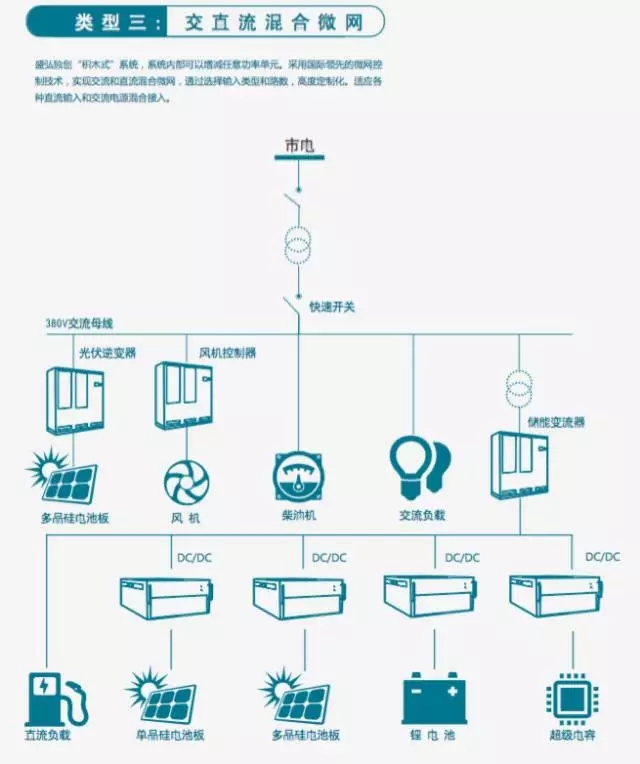 自2012年以來(lái),盛弘電氣儲(chǔ)能PCS已積累了多個(gè)微電網(wǎng)項(xiàng)目應(yīng)用經(jīng)驗(yàn),并形成了針對(duì)不同類型微電網(wǎng)的解決方案,包括交流微電網(wǎng)、直流微電網(wǎng)及交直流混合微電網(wǎng)。這種解決方案上的廣泛覆蓋性首先源于產(chǎn)品模塊化設(shè)計(jì)所帶來(lái)的靈活性,就像搭建積木一樣,針對(duì)儲(chǔ)能項(xiàng)目的具體需求,僅通過(guò)內(nèi)部功率模塊的增減,盛弘電氣PCS就能適配幾乎所有應(yīng)用場(chǎng)景。