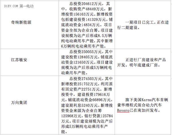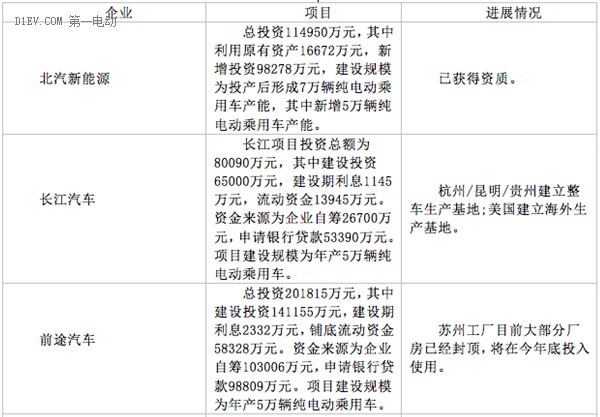 15家企業(yè)新建純電動(dòng)乘用車項(xiàng)目進(jìn)展情況